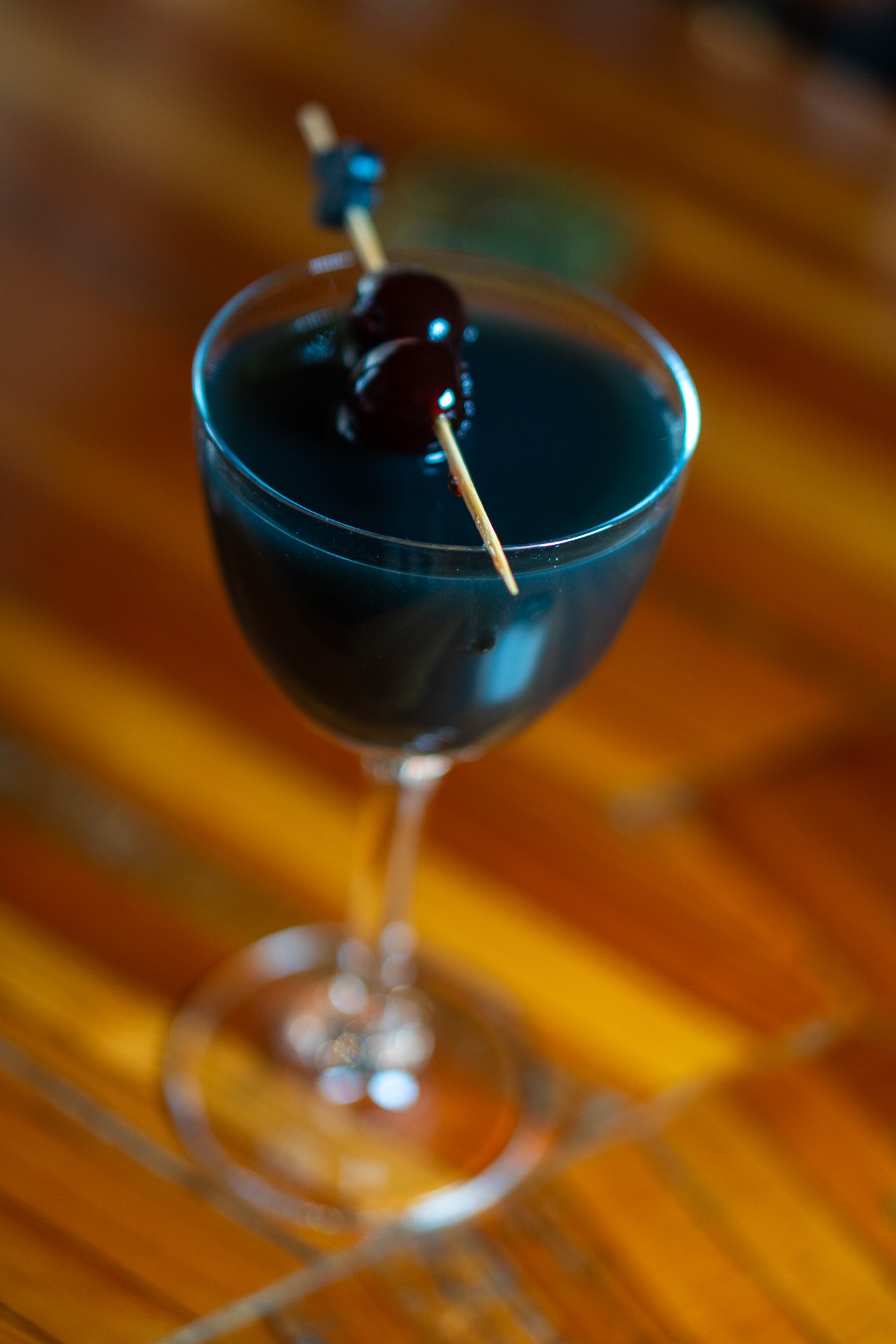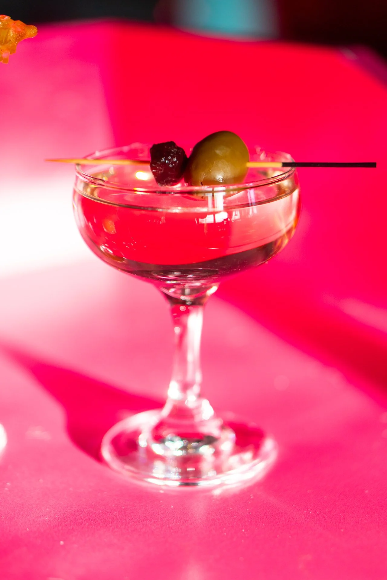 Gin and pear with a dangerous edge. Savory, seductive, unforgettable. Garnished to kill: fig & blue cheese olive.