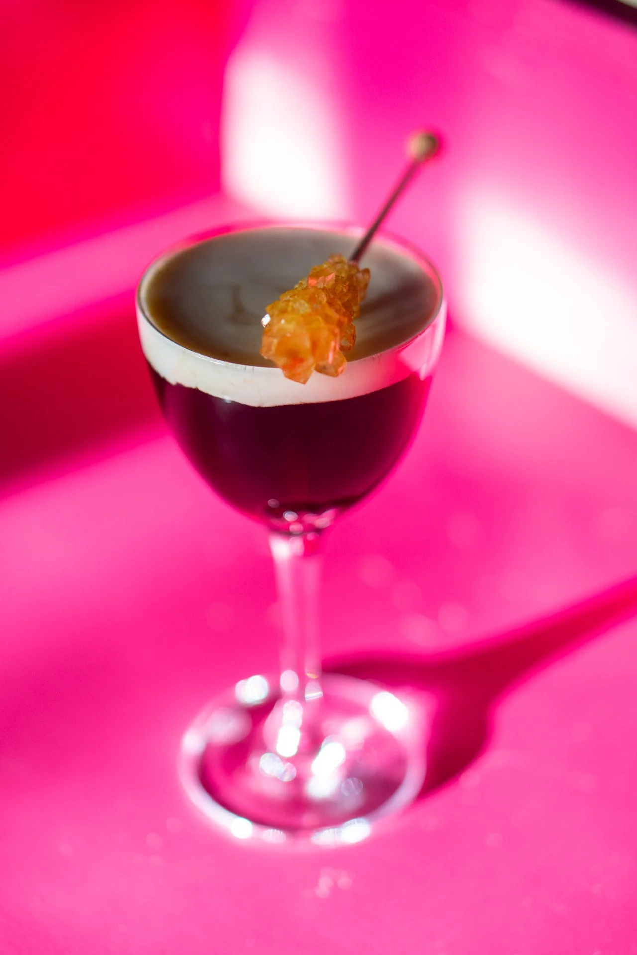 Amaretto warmth with absinthe bite. Citrus, spice, and golden-hour drama. A classic with a twisted ending.